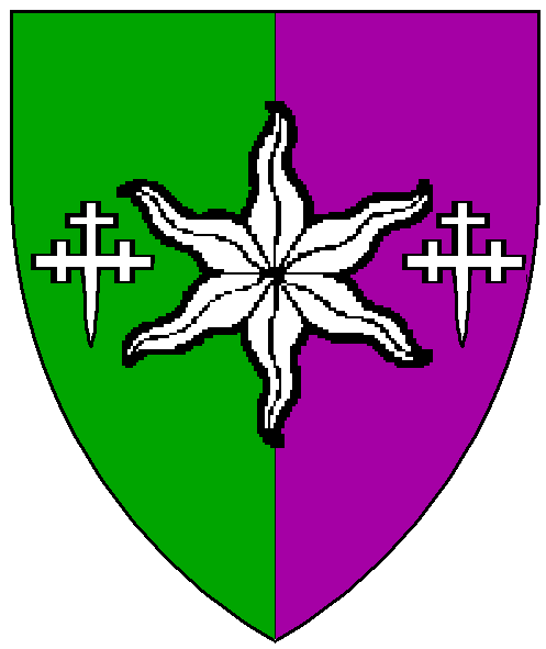 Sonya the Fair Lady Per pale vert and purpure, an estoile between in fess two crosses crosslet fitchy argent. Award of Arms2001-02-24Lady